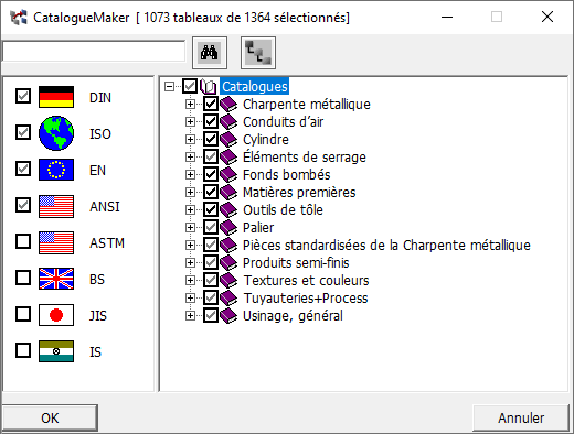 2. Dans la colonne de gauche du CatalogueMaker, désactivez toutes les normes sauf DIN.