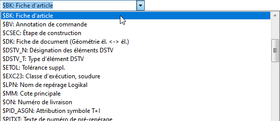 Ici sont listés les noms des attributs. Les attributs prédéfinis par ISD peuvent également être sélectionnés dans une liste de choix. Pour cela, effectuez un double-clic sur la ligne correspondante et sélectionnez l'attribut de la liste.
