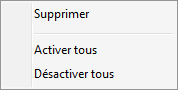 Par un clic droit sur une entrée du tableau, vous activez un menu contextuel donnant accès à des fonctions permettant de supprimer une ligne du tableau ainsi que de cocher ou de décocher toutes les cases de la colonne Actif.