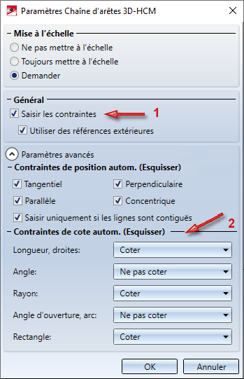 Cette fonction permet de copier dans l'esquisse active des arêtes 3D à partir d'éléments de la construction de la scène active.