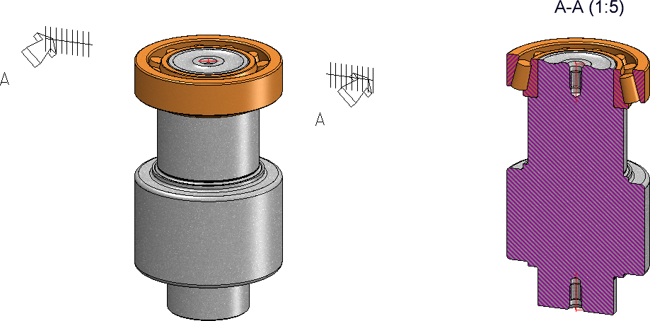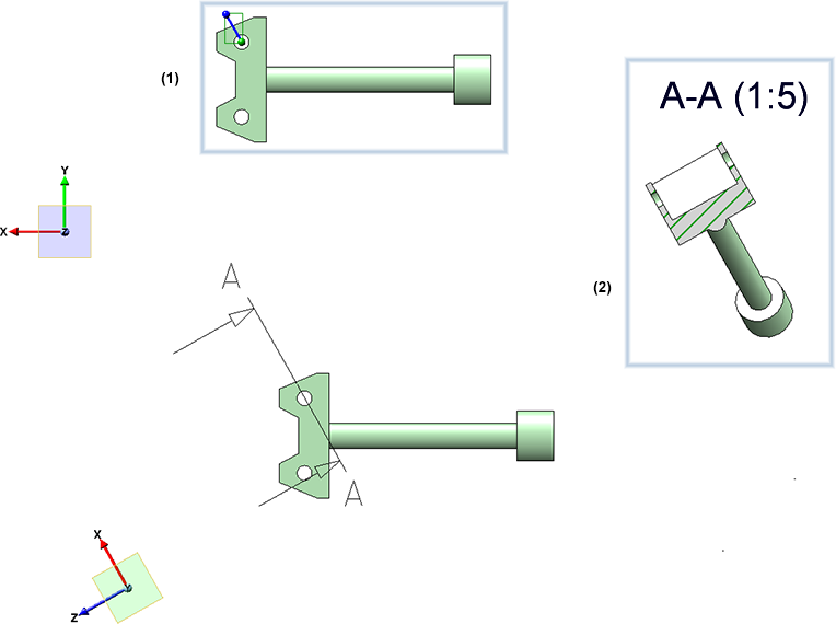 Depuis HiCAD 2021, il est possible à l'aide des fonctions Zoom sur la vue en coupe ou Zoom sur la vue de détail de représenter en agrandi une vue en coupe ou de détail appartenant à une vue active. La vue en coupe ou de détail devient alors la vue active.