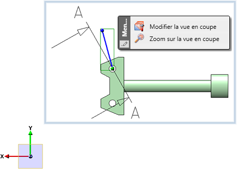 Lorsque vous cliquez avec le bouton droit de la souris dans la vue d'origine d'une vue en coupe sur l'identifiant, l'annotation ou le symbole de direction, vous disposez dans le menu contextuel de la fonction Zoom sur la vue en coupe.