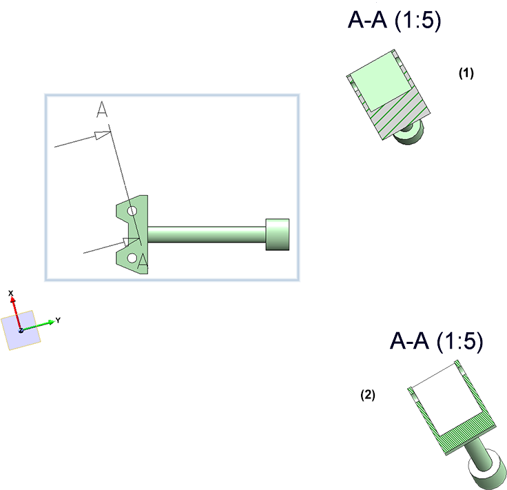Pour les vues en coupe délimitée, l'esquisse de délimitation (c'est-à-dire l'esquisse de coupe du détail) se situe sur le plan de coupe principal. C'est généralement aussi le cas si vous avez extrait un détail (avec l'esquisse comme coupe de détail) d'une vue en coupe.