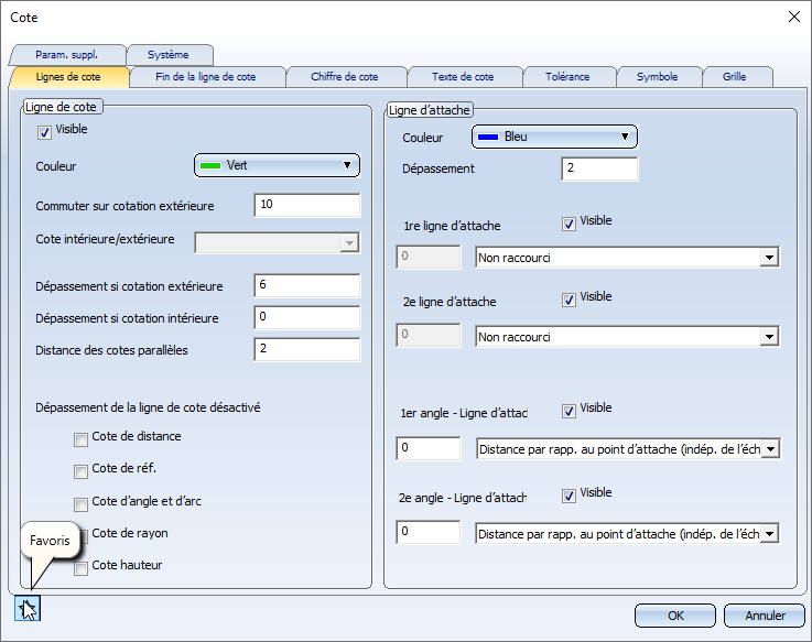 Enregistrer les paramètres de cote comme favoris