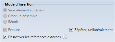 Dans une construction, à l'insertion d'éléments, il arrive souvent qu'une référence à d'autres objets de la construction soit utilisée, par exemple lorsque vous insérez un perçage dans un autre élément relativement au centre d'un perçage, ou lorsque vous souhaitez tronquer un profilé par rapport à un autre élément. Cette référence entre deux éléments est désignée comme "référence externe". Si le paramètre de Feature des éléments à copier possède une référence externe, il est alors désormais possible via l'option Désactiver les références externes de spécifier si les références externes devront être prises en compte pour les copies ou non. Par défaut, la case est décochée. Cela correspond au procédé standard jusqu'à maintenant utilisé pour la copie d'éléments. Si la case est cochée, la référence externe de l'original sera reprise pour tous les éléments.