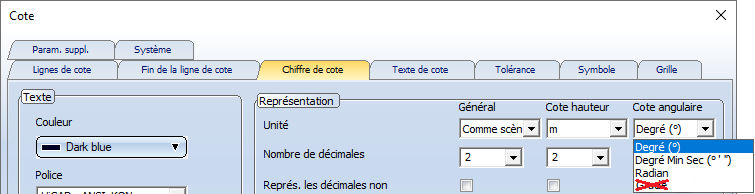 La fonction de même nom du menu contextuel pour les cotes reste inchangée, c'est-à-dire qu'ici seule une cote pourra être modifiée de manière individuelle.