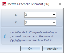 Cochez dans la fenêtre de dialogue Mettre à l'échelle l'élément (3D) les cases de votre choix et quittez la fenêtre par OK.