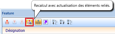 Pour actualiser également les autres sections réalisées, utilisez la fonction du Feature Recalcul avec actualisation des éléments reliés