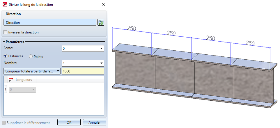 Charpente métallique > Prolonger > Diviser > Diviser le long de la direction