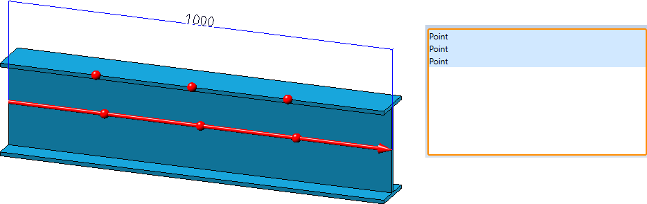 Lorsque vous apportez des modifications dans le Feature sur l'élément d'origine qui se trouve avant le Feature Diviser le long de la direction, seul l'élément d'origine sera alors recalculé. La division est effectuée à la même position par rapport au système de coordonnées de l'élément. Cela signifie que ni les points de division ni les sections ne sont recalculés automatiquement.