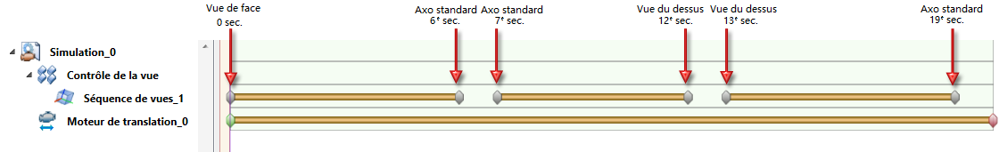 Il faut maintenant définir la séquence de vues de la façon suivante : la vue d'origine est la vue de face. Après 6 secondes, l'axonométrie standard devra être affichée pendant 1 seconde. Ensuite, c'est au tour de l'axo standard doit passer à la vue du dessus montrée à partir de la 12e seconde et également pendant 1 seconde. Enfin, la vue de dessus retourne à la vue d'axonométrie standard qui est affichée à partir de la 19e seconde.