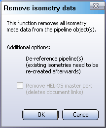 Optionally, you can also use this function to revoke pipeline referencings (the KRA files and the document master data are deleted in the process), or remove the entire HELiOS master data you have created. If you delete the article master data, the links between existing isometries and other related documents will be lost. Therefore, HiCAD offers to display a list of the concerning documents in such cases. This query is identical to that issued when deleting referenced pipelines.