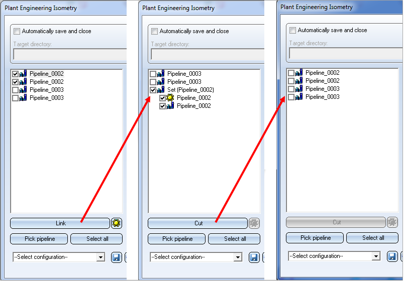 The Link button is context-sensitive. When you select a pipeline set, the name of the "Link" button will change to Cut. Click the Cut button to split the set up into the individual pipelines again.
