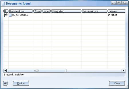 The HELiOS dialogue listing the linked documents is displayed. Double-click a document to display the appropriate document master data. You can also select documents (e.g. with SHIFT + click) and delete them with the DEL key.