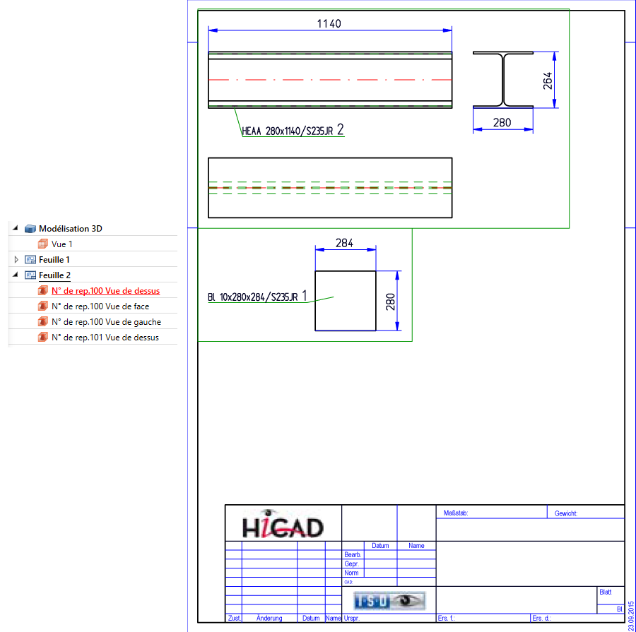 Lorsque l'on crée pour les deux cas un dessin d'exécution à partir des mêmes paramètres, on remarque que l'ensemble de structure ne sera pas pris en compte.