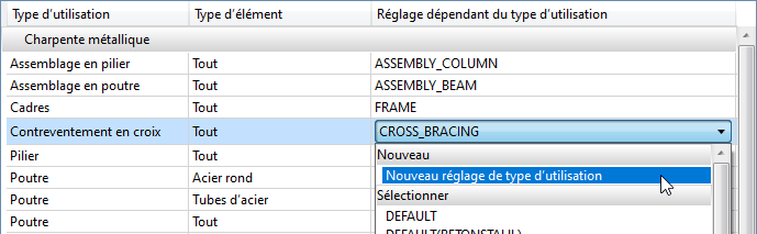 Pour définir un nouveau réglage dépendant du type d'utilisation pour une attribution, sélectionnez dans la liste de choix sous Réglage dépendant du type d'utilisation l'entrée Nouveau réglage de type d'utilisation.
