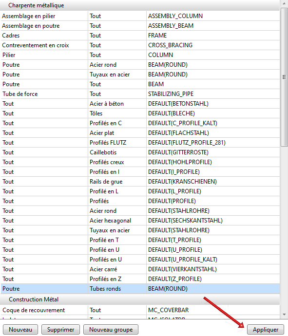 Cliquez sur le bouton Appliquer pour prendre en compte définitivement les modifications.