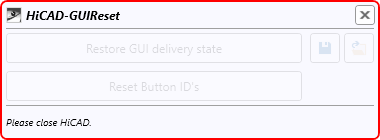 De plus, cet outil permet de réinitialiser les ID de bouton. Cela est nécessaire lorsque vous travaillez les barres d'outils de HiCAD.