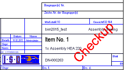 Workshop and detail drawings can be assigned the Workflow status Checkup. The permissions to modify or delete drawings will then be withdrawn until the status will be reset.
