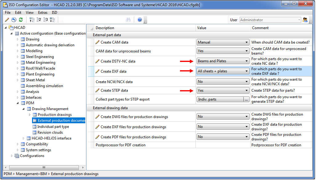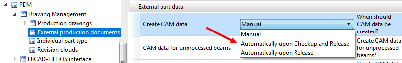 You have the option to automatically create CAM data (i.e. without calling the Production function) when carrying out checkups and releases. This behaviour can be set accordingly in the Configuration Editor: