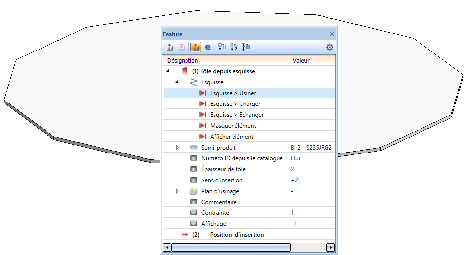 Pour désactiver le Feature lors de la création d'une tôle, décocher alors la case Feature . Par défaut, la technique par Feature est cochée .