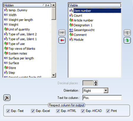 Changes the sorting sequence in the window Hidden. This sorting has no influence on the list itself, but is intended to facilitate the data selection.