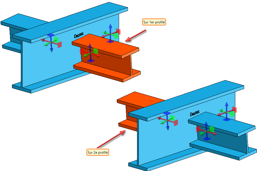 de la possibilité de spécifier séparément la configuration pour les deux profilés à raccorder dans les onglets Sur 1er profilé et Sur 2e profilé. SI vous souhaitez appliquer vos paramètres opérés sur un profilé à l'autre côté, cliquez alors sur le symbole