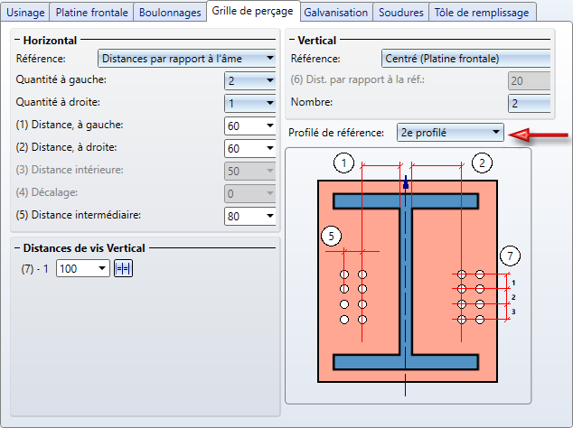 Grille de perçage - choix du profilé de référence