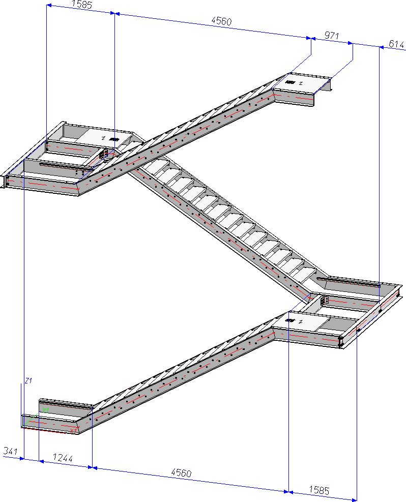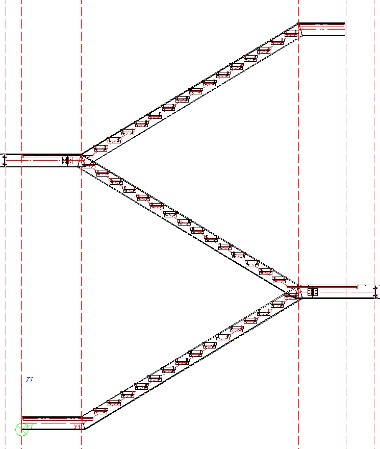 Notre exemple se comporte de 3 sections d'escalier (volée 1 à 3). Pour chaque volée, le garde-corps sera généré séparément pour le limon gauche puis droit de l'escalier. La création du garde-corps comporte donc dans notre exemple 6 étapes.