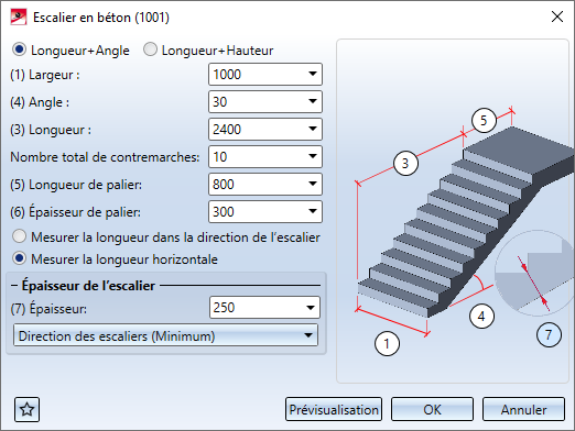 Dans la section inférieure de la fenêtre de dialogue, vous pouvez déterminer si l'épaisseur de l'escalier doit valoir en :