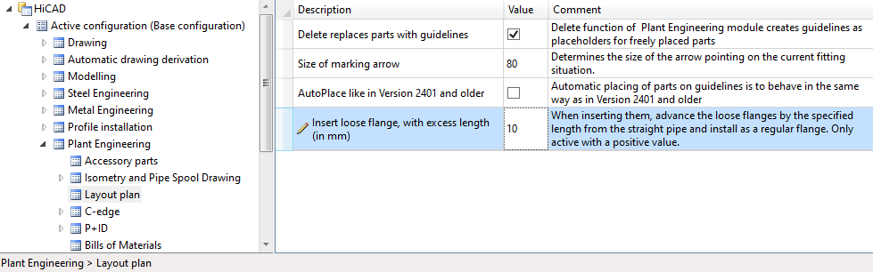 If you enter a value of 0 or a negative value, loose flanges will be installed as usual. If a positive value is entered, then each loose flange is installed like a regular flange. In particular, when connecting to a straight pipe, it is not necessary to connect with the first point as usual for loose flanges, but with the second point.The default setting is 0.