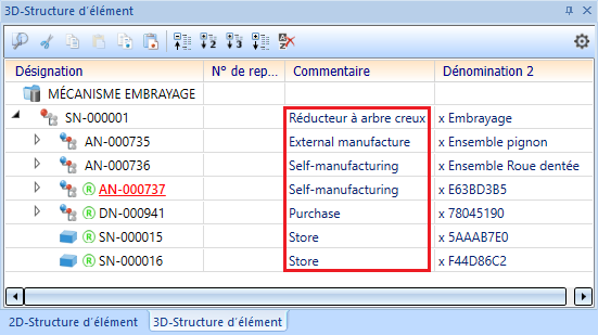 Dans notre exemple, trois types d'élément différents TA1, TA2 et TA3 sont utilisés.