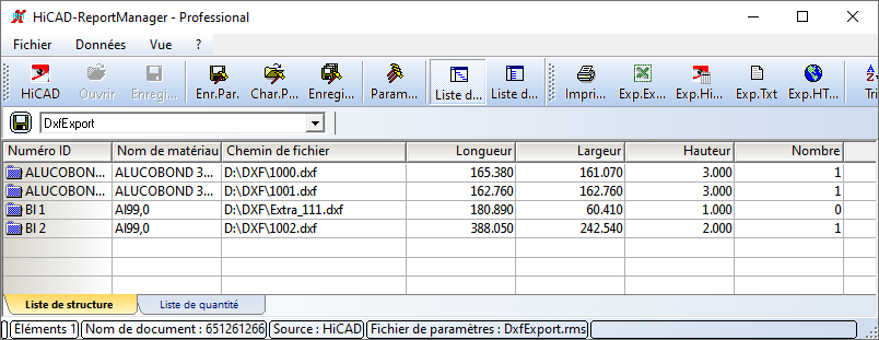 Le traitement du numéro de repérage est défini sous l'entrée Tôle pliée > Développement de tôle > Grouper selon le numéro de repère du Gestionnaire de Configuration. Si la case y est cochée , la projection développée des tôles avec le même numéro de repère ne sera exportée qu'une seule fois. La quantité reste elle inchangée.