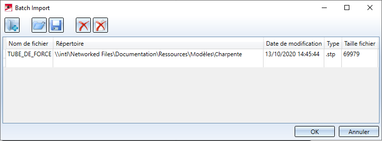 À l'aide de cette fonction, vous pouvez lire des formats étrangers de façon automatisée via une liste d'interfaces. Pour définir ou modifier une liste, utilisez les fonctions de la fenêtre de dialogue Batch Import