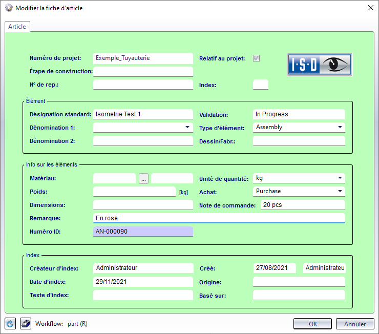 Affichage et modification des articles existants à la création de l'isométrie et de la tuyauterie