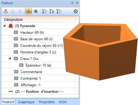 Si vous paramétrez la pyramide comme dans l'exemple en illustré, puis lancez la fonction Enregistrer dans la variante, via l'explorateur
