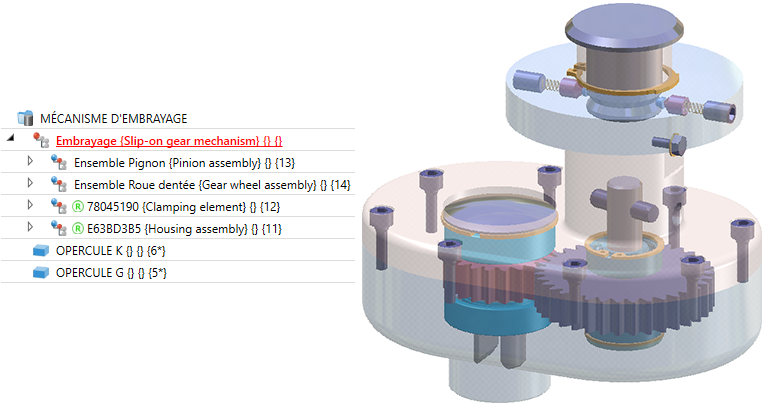 Bien sûr, vous pouvez dénommer un élément principal 2D (par ex. en Ensemble principal Moteur) ou un élément secondaire (par ex. en Ensemble Couverture tôle).