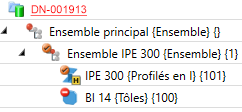 Les éléments des dessins qui sont sous le statut de workflow En révision sont identifiés dans l'ICN par le symbole
