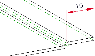 Le pli en Z vous permet de plier deux rabats sur une tôle en une étape de travail. Dès lors que les données saisies sont suffisantes, une prévisualisation du nouveau rabat vous apparaît. C.-à-d. choisir une arête de jonction, ce qui permettra de faire apparaître un pli en Z possible à partir des valeurs standards. Si vous avez activé Largeur par point, alors les nouveaux rabats ne vous apparaîtront qu'après avoir identifié un point et la largeur ou qu'après avoir identifié deux points, dès lors que vous avez choisi une arête de jonction. Vous pouvez par ailleurs voir directement les modifications, par ex. en passant de Raccourcir, extérieur à Raccourcir, intérieur. Si l'option Appliquer immédiatement est activée, alors le pli en Z sera élaboré de suite dès lors que les données saisies sont correctes, puis elles pourront être modifiées ensuite à partir du Feature.