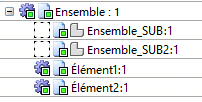 Le transfert d'ensembles n'est possible qu'avec une précision totale. C'est-à-dire que si l'ensemble contient des références à des substituts, ceux-ci sont visualisés en conséquence dans la structure.