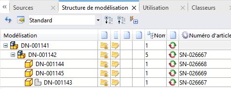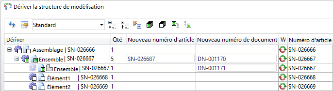 Lors du transfert dans la base de données ou de la dérivation de la structure de modélisation, le substitut reçoit automatiquement la même fiche d'article que l'ensemble dans lequel il repose.