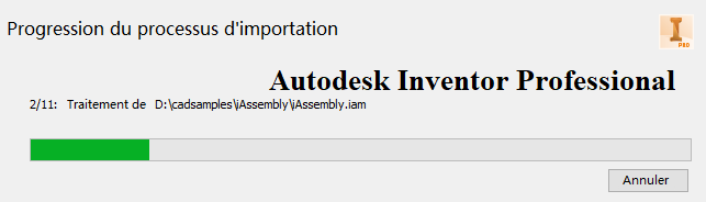 La fenêtre d'importation contient maintenant la liste de tous les fichiers .ipt et .iam qui se trouvent dans ce répertoire.