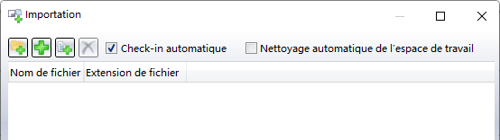 La case Nettoyage automatique de l'espace de travail vous permet de contrôler si les fichiers concernés doivent être directement supprimés de l'espace de travail après l'importation de lot. Cette option peut s'avérer utile si le chargement répété des mêmes éléments dans l'espace de travail a des répercussions sur la performance générale. Les documents qui se trouvent déjà dans l'espace de travail au moment de l'importation ne sont pas concernés par la procédure de nettoyage.