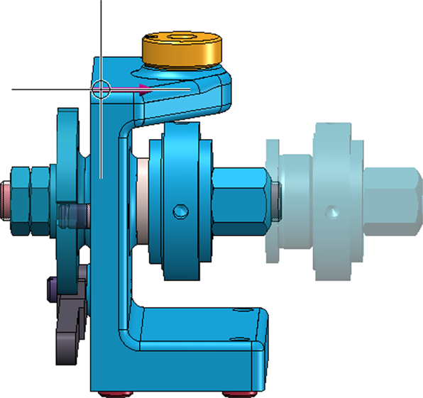 Ici, le déplacement se réfère à un élément spécifique de la liste de sélection. Après avoir déterminé la direction, HiCAD vous invite à sélectionner un élément de référence. Ce dernier doit être un élément de la liste de sélection, sinon un message sera affiché.