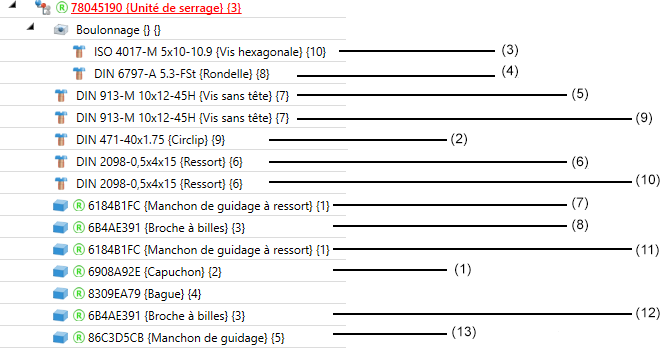 Les vis sans tête (5) et (9) devront être placées de façon symétrique par rapport à l'axe Z. Cela signifie qu'il est nécessaire ici d'utiliser la fonction Concentrique. Même chose pour les deux ressorts, les manchons de guidage à ressort, ainsi que les broches à bille. Cocher ici également la case Sélection multiple et Une trace pour chaque élément et décocher la case Appliquer immédiatement.