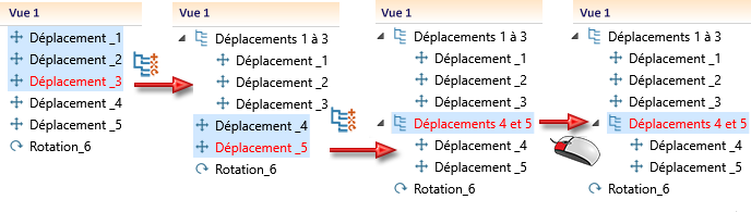 La fonction Déplacer permet de définir les déplacements dans la vue éclatée active. |
