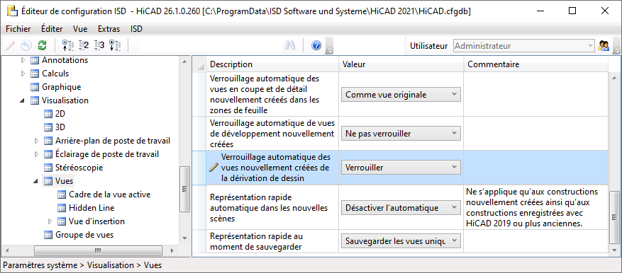 La représentation des vues utilisée lors de l'enregistrement de la scène dépend des paramètres du Gestionnaire de Configuration. Vous disposez à cette fin, sous Paramètres système > Visualisation > Vues, du paramètre Représentation rapide au moment de sauvegarder.