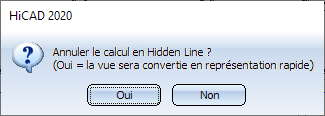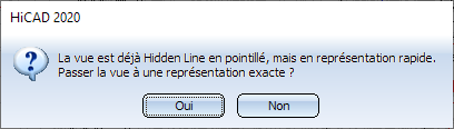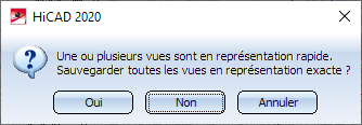 Si la scène contient des vues en représentation rapide, HiCAD affiche la demande suivante :