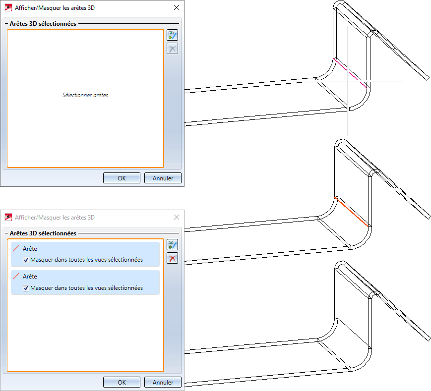 Par un clic sur OK, les arêtes indiquées dans la liste seront masquées.