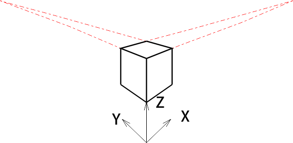 Deux axes de coordonnées sont parallèles au plan de l'image et sont donc projetés en parallèle sur le plan de l'image. Seul le troisième axe converge vers un point de fuite.